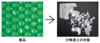 ・完全生分解性があり、不燃ごみとして埋め立てた後、水と炭酸ガスに分解